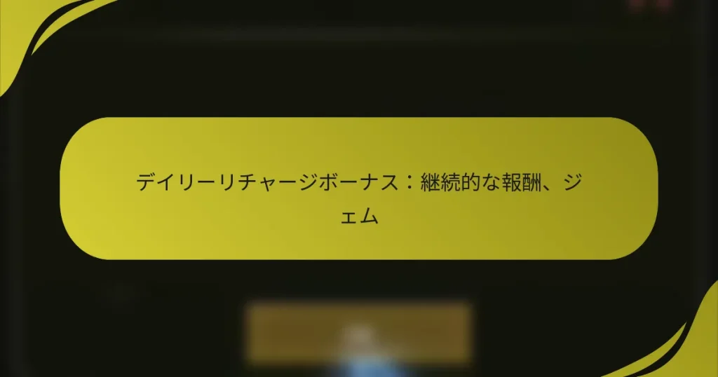 コミュニティリチャージボーナスは、リチャージイベントへの共同参加に対して共有報酬を提供することで、ユーザー間の協力とエンゲージメントを促進することを目的としています。参加者は、全体的な体験やゲームプレイを向上させる貴重なインセンティブ、例えばジェムを獲得できます。これらのボーナスは、個々の貢献を促すだけでなく、グループ内のコミュニティ意識を強化します。 コミュニティリチャージボーナスとは? コミュニティリチャージボーナスは、ユーザーが貢献に基づいて報酬を獲得できるリチャージイベントへの共同参加を促すために設計されたインセンティブです。これらのボーナスは通常、参加者の全体的な体験を向上させるジェムなどの共有報酬を含みます。 コミュニティリチャージボーナスの定義 コミュニティリチャージボーナスとは、ユーザーが特定のリチャージ額に達するなどの共通の目標に貢献するシステムを指します。目標が達成されると、すべての参加者は自分の貢献に比例した報酬を受け取ります。これにより、ユーザー間のコミュニティ意識と協力が促進されます。 これらのボーナスの主な目的は、ユーザーがより積極的に参加するよう動機付け、プラットフォームと参加者の双方が利益を得るウィンウィンの状況を作り出すことです。リソースをプールすることで、ユーザーは個別に達成できるよりも大きな報酬を解放できます。 コミュニティリチャージボーナスの主要要素 コミュニティリチャージボーナスを定義するいくつかの主要要素には、リチャージ目標、報酬構造、イベントの期間が含まれます。これらの要素を理解することは、効果的な参加にとって重要です。 リチャージ目標:コミュニティが共同で達成しなければならない特定の目標額。 報酬構造:報酬は通常階層化されており、高い貢献がより良い報酬を解放することがあります。 イベントの期間:リチャージ目標を達成しなければならない期間で、通常は数日から1週間の範囲です。 これらの要素は、ユーザーが共通の目標に向かって貢献し、協力することを促す魅力的な体験を作り出すために連携しています。 共有報酬とジェムの役割 共有報酬、特にジェムは、コミュニティリチャージボーナスにおいて中心的な役割を果たします。ジェムはプラットフォーム内で通貨として使用され、ユーザーがアイテムを購入したり、プレミアム機能にアクセスしたりすることを可能にします。 コミュニティがリチャージ目標を達成すると、参加者は自分の貢献に基づいてジェムを受け取ります。これにより、ユーザーはより多くの貢献をするよう動機付けられ、プラットフォームでの全体的な体験が向上します。 さらに、共有報酬はユーザー間の仲間意識を育むことができ、全員が共同の努力から利益を得ることで、今後のイベントへのさらなる参加を促します。 参加資格基準 コミュニティリチャージボーナスへの参加資格は、通常、プラットフォームによって異なる特定の基準を満たす必要があります。一般的な要件には、アクティブなアカウントを持ち、イベント中に最低限の貢献を行うことが含まれます。 アクティブなアカウント:ユーザーは、参加するために確認済みのアクティブなアカウントを持っている必要があります。 最低貢献:報酬を得るためには、ユーザーが貢献する必要がある最低額が設定されていることがよくあります。