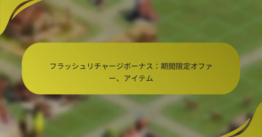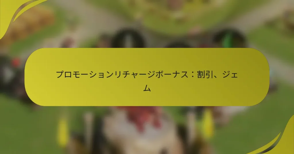 特別イベントのリチャージボーナスは、指定されたプロモーション期間中にゲーム内購入を行うプレイヤーにとって魅力的な報酬です。これらのボーナスには、ゲームプレイや戦略を大幅に向上させるユニークなアイテムや重要なリソースが含まれることが多いです。これらのイベントに参加することで、貴重なインセンティブが得られるだけでなく、全体的なゲーム体験が豊かになります。 特別イベントのリチャージボーナスとは? 特別イベントのリチャージボーナスは、特定のプロモーションイベント中にゲーム内購入を行ったプレイヤーに与えられる報酬です。これらのボーナスには、ゲームプレイを向上させ、イベントに参加するインセンティブを提供するユニークなアイテムや貴重なリソースが含まれることが多いです。 ゲームにおけるリチャージボーナスの定義 ゲームにおけるリチャージボーナスとは、指定された期間中に実際のお金やゲーム内通貨を使った際にプレイヤーが受け取る追加の報酬を指します。これらのボーナスは、追加の通貨、独占アイテム、またはプレイヤー体験を向上させるブーストなど、さまざまな形態を取ります。特別イベント中の支出とエンゲージメントを促すために設計されています。 通常、リチャージボーナスは階層化されており、プレイヤーが多く支出するほど、より大きな報酬を受け取ることができます。この構造は、プレイヤーがより高価なボーナスをアンロックするために多く投資するよう促します。これらのボーナスの条件を理解することは、イベント中に得られる利益を最大化するために重要です。 特別イベントの重要性 特別イベントは、プレイヤーの間に緊急感や興奮を生み出すため、ゲームにおいて重要です。これらのイベントは、休日、記念日、またはゲームのアップデートと重なることが多く、プレイヤーをゲームに引き戻します。これらのイベントは、プレイヤーのエンゲージメントと開発者の収益を大幅に向上させる可能性があります。 さらに、特別イベントは通常、期間限定のコンテンツを導入し、独占的な体験を求めるプレイヤーにとって魅力的です。これらのイベントに参加することで、イベント期間外では入手できないユニークな報酬を得ることができ、全体的なゲーム体験が向上します。 提供されるユニークなアイテムの種類 特別イベント中、プレイヤーはリチャージボーナスとしてさまざまなユニークなアイテムを受け取ることが期待できます。これには、他の時期には入手できない独占的なスキン、キャラクターの衣装、または限定版の武器が含まれます。このようなアイテムは、ゲームの視覚的な魅力を高め、プレイヤーが自分の個性を表現することを可能にします。 さらに、一部のイベントでは、ゲームプレイにおいて優位性を提供する強力なゲーム内アイテムが提供されることがあります。これらのユニークなアイテムは、プレイヤーのパフォーマンスや戦略に大きな影響を与える可能性があり、イベント中に非常に求められます。 イベント中に利用可能なリソース イベントは通常、プレイヤーがゲームプレイを助けるさまざまなリソースにアクセスできるようにします。一般的なリソースには、ゲーム内通貨、クラフト材料、パフォーマンスや回復を向上させる消耗品が含まれます。これらのリソースは、イベント中により多くの量が提供されることが多く、プレイヤーがリチャージして参加することを促します。 プレイヤーは、これらのリソースを活用してゲームプレイ体験を向上させるべきです。たとえば、イベント特有の通貨を使用することで、通常は入手が難しいレアアイテムやアップグレードを獲得することができます。リソースの使用を効果的に計画することで、特別イベントに参加することで得られる利益を最大化できます。 イベントの期間とタイミング 特別イベントの期間はさまざまで、通常は数日から数週間続きます。開発者はこれらのイベントを事前に発表し、プレイヤーが参加の準備や戦略を立てることができるようにします。タイミングは重要で、プレイヤーはリチャージボーナスを最大限に活用するために、イベントの開始と終了の時期を把握する必要があります。 プレイヤーは、公式発表やゲーム内通知に注意を払い、今後のイベントについて情報を得るべきです。リマインダーを設定することで、限定オファーやユニークな報酬を逃さないようにすることができます。 特別イベントのリチャージボーナスを取得するには? 特別イベントのリチャージボーナスを取得するには、プレイヤーは特定の時間枠内にゲーム内購入を行うことで指定されたリチャージイベントに参加する必要があります。これらのボーナスには通常、ユニークなアイテムや追加のリソースが含まれ、全体的なゲーム体験を向上させます。